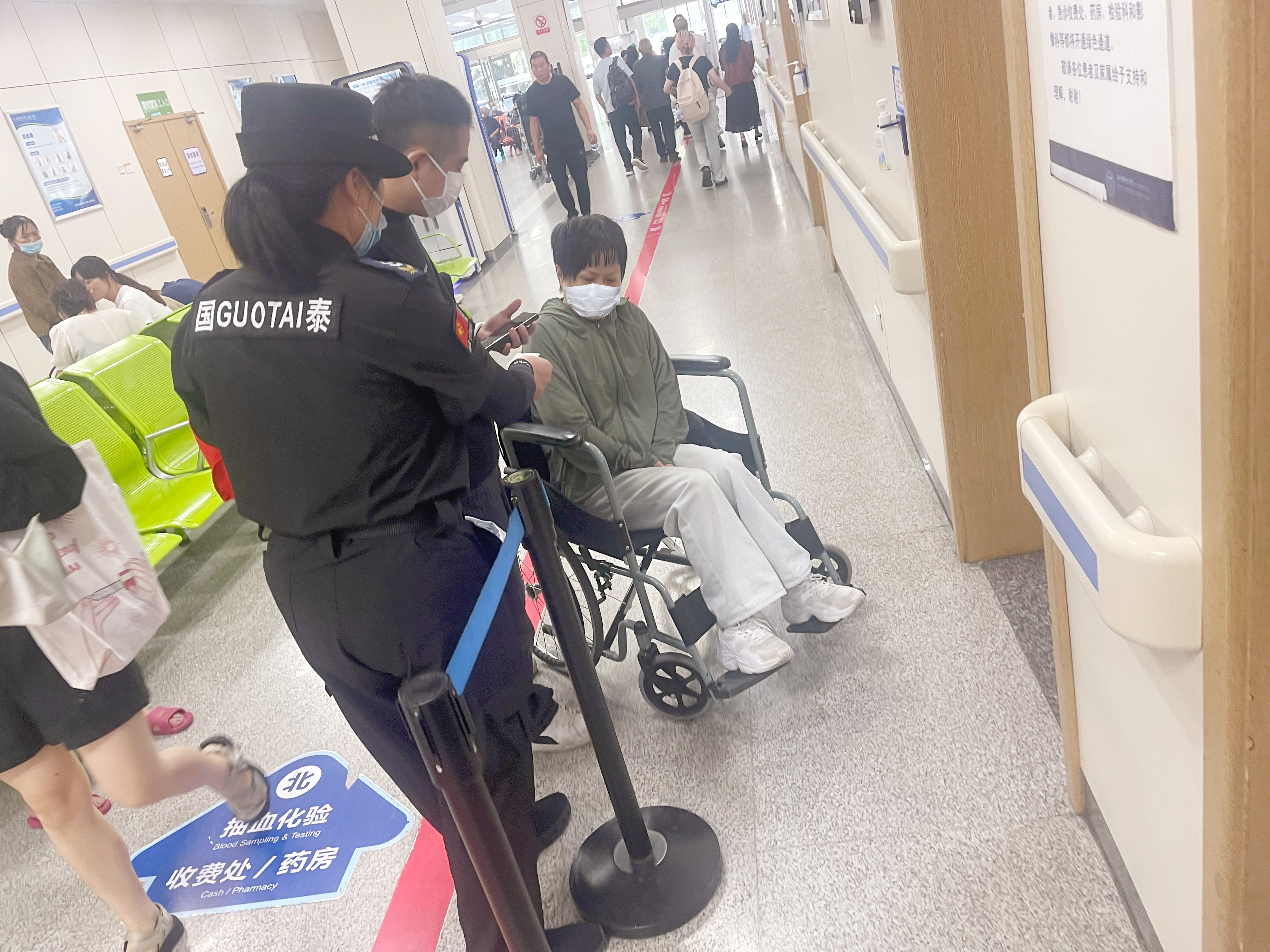 2025年6月11日上午,溫州醫(yī)科大學(xué)附屬第一醫(yī)院門(mén)診大廳安檢口上演著日常的繁忙,駐點(diǎn)在此的溫州國(guó)泰保安服務(wù)有限公司安保隊(duì)員像往常一樣執(zhí)行安檢工作時(shí),隊(duì)員突然發(fā)現(xiàn)——隊(duì)伍中一名獨(dú)自候檢的中年女士面色蒼白,在排隊(duì)通道中不停顫抖。