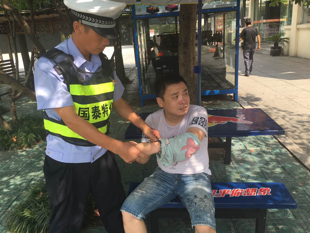 8月10日上午9點(diǎn)20許,青田服務(wù)區(qū)現(xiàn)場(chǎng)管理員在金華方向發(fā)現(xiàn)從貨車下來(lái)一名男子,滿頭大汗,神色慌張,馬上前去查問(wèn)。該男子一會(huì)說(shuō)有人拿子彈打他,又說(shuō)有人用激光射他,前言不搭后語(yǔ)有吸毒嫌疑。經(jīng)過(guò)進(jìn)一步了解,男子說(shuō)自己駕駛一輛出租車從溫州過(guò)來(lái),在沒(méi)到青田服務(wù)區(qū)的一個(gè)山洞口時(shí)發(fā)生車禍,于是攔了一輛貨車進(jìn)服務(wù)區(qū)。工作人員馬上聯(lián)系指揮中心,卻得到指令,一名穿白色短袖身高1米7男子的男子是吸毒持刀搶出租車的逃犯,正逃往麗水方向,如有發(fā)現(xiàn)要求馬上把他控制起來(lái)。經(jīng)過(guò)跟指揮中心確認(rèn),眼前該男子就是犯罪嫌疑人,青田服務(wù)區(qū)馬上啟動(dòng)防暴應(yīng)急預(yù)案,現(xiàn)場(chǎng)主管立即帶領(lǐng)國(guó)泰保安駐派服務(wù)區(qū)保安隊(duì)長(zhǎng)(阮蘇彬)趁其不備,一擁而上將其控制后交給警方處理。